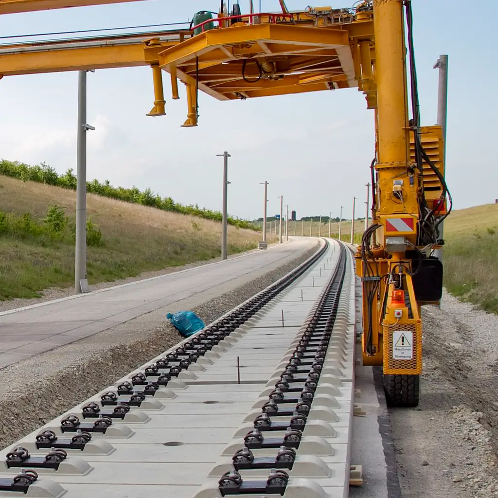 Die von uns gefertigten Gleistragplatten bieten höchste Stabilität und definierte Geometrien, ideal für direkte Schienenbefestigungen oder komplexe Streckenabschnitte.